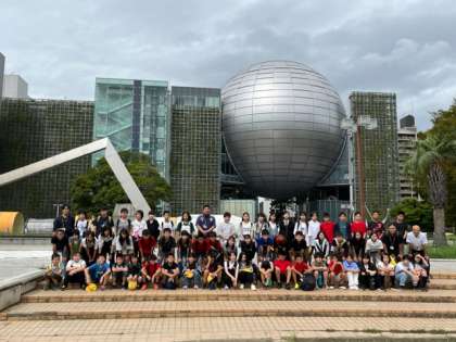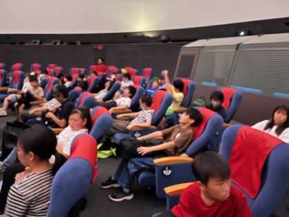 名古屋市科学館前で、学年の集合写真を撮りました。科学館では、プラネタリウムを見ました。