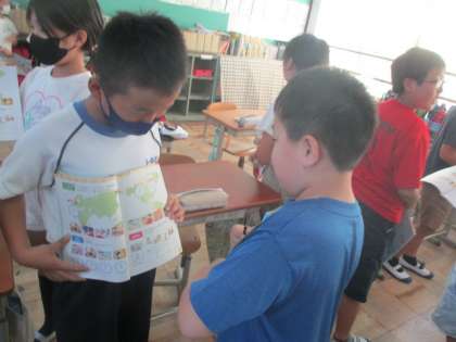 子どもたちは,自分の設定した時刻を相手が正確に答えられているかを確かめながら,多くの人たちと交流を楽しんでいました。