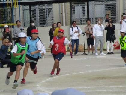 「リード!」「こっちー!」などと,お互いに声をかけ合いながら,協力してバトンをつなぎました。