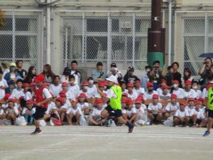 本日の運動会,4年生最初の種目は『学年リレー』でした。