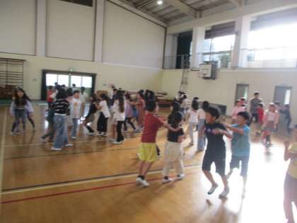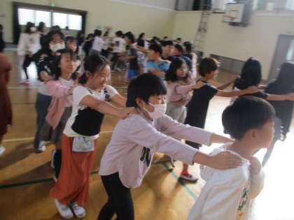 そして,学年のつながりをさらに深めるために,3種類のじゃんけんゲームを行いました。『じゃんけん列車』『進化じゃんけん』『動物じゃんけん』,どのゲームもクラス関係なく楽しく活動していました。