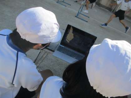タブレットで自分たちが走っている動画を撮り合い,見返すことで,より良い動きをするためにどんなことが大切か話し合っていました。