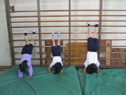 肋木に挑戦しました。これまた、体幹を鍛える運動です。自分の体を支えるための力やバランスをとるための力が必要です。低いところから練習して、上手にできる子が増えていきています。