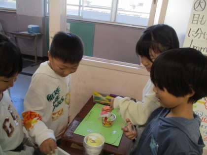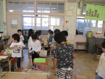 待ちに待ったおもちゃランドの日です。1年生を招待するため、今日まで頑張って作った自慢のおもちゃです。1年生が楽しんでくれるかとてもドキドキしました。