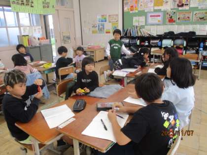 国語科「そうだんにのってください」の学習では、グループで話し合いをする学習をしています。テーマはクラスのお楽しみ会やみんなあそびのことですので、わくわくしながら話合いをしています。