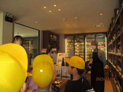 生活科の「もっともっとまちたんけん」で上鳥羽にあるワイン屋さん「ポントビィーニョ」へ行ってきました。登下校の時に見ていた気になるお店ということで子どもたちから調べたいという意見があがりました。お店の方も大変親切にしてくださいました。