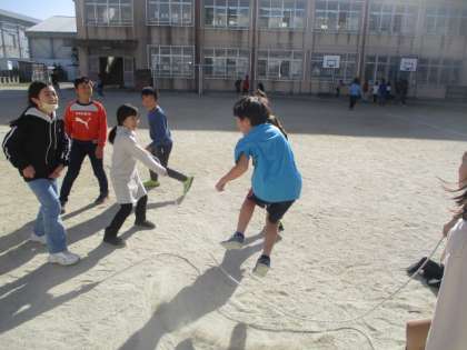 休み時間には,大縄の8の字に取り組む子どもたちが増えてきました。少しでも多く連続で跳べるようにみんなで声をかけ合いながら楽しく遊んでいます。