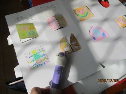 図画工作科「まどを ひらいて」の学習では、カッターナイフの使い方を学習し、窓を切り抜きました。みんなとても上手くり抜くことができました。窓のくり抜きが終わると、自分だけのお家や建物の見た目をすてきに制作中です。