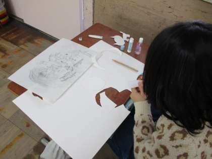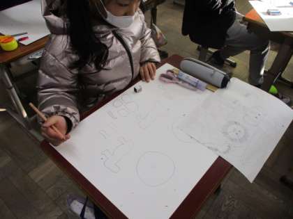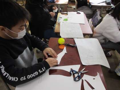図工の学習では、版画展に向けての作品を作っています。お話のワンシーンを想像し、迫力のある作品になるように頑張っています。