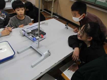 様々な予想をしていた子どもたちでしたが,班の仲間と協力しながら興味津々の様子で実験に取り組んでいました。