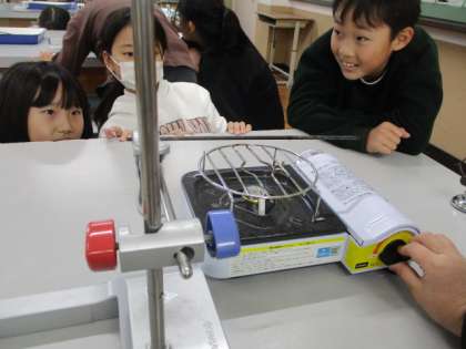 理科『ものの あたたまり方』の学習では,金属はどのように温まっていくのか事件をしました。