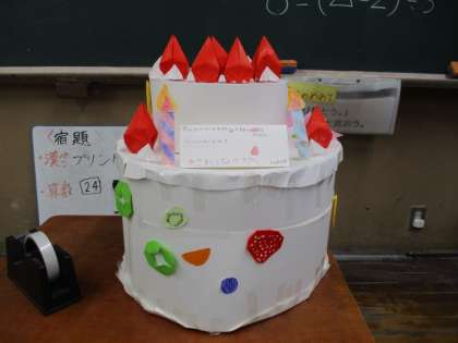 お誕生日係が,「みんなでケーキを作ろう!」を企画し,自分たちで作ったクリームやフルーツを飾り付けて,巨大ケーキを作りました。