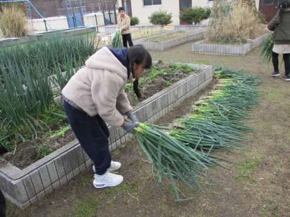 5月から育ててきた九条ネギを収穫しました。最初植えたときよりもだいぶ大きくなりました。