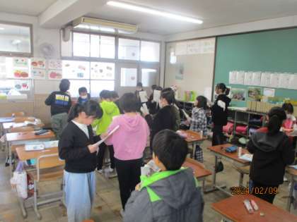 外国語の学習では,自分だけのスペシャルピザを英語で紹介し合いました。