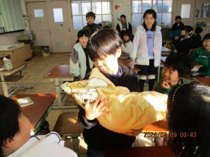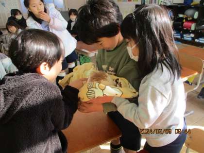 お人形だったけど、本当の赤ちゃんと同じ3000グラム。「重いなあ。」首もすわっていないので「気をつけてだっこしなあかんで。」と子どもたち同士で声をかけあいます。赤ちゃんをだっこするととっても心があたたかくなりました。きっと、みんなの家族もみんなをだっこしてもっと幸せな気持ちだったはず!自分が生まれたこともすごく奇跡的なことなのだと学びました。