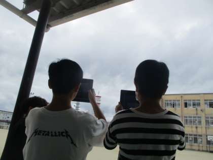 理科の学習で、空の様子をタブレットで撮影して観察しました。