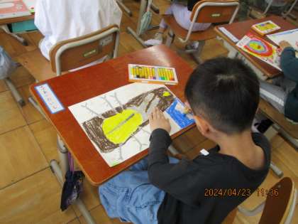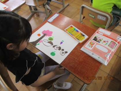 図工の学習では、クレパスで好きなものをかきました。