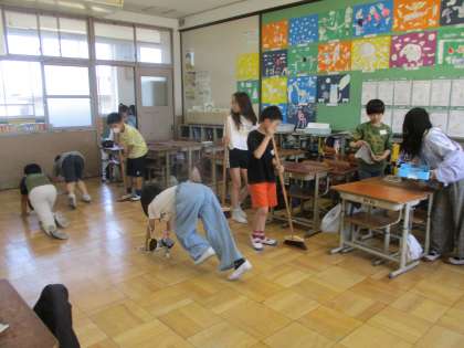 自分の担当場所の掃除が終わったら、他の場所の掃除を手伝える4年生!