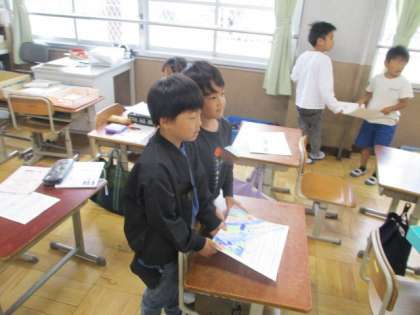 それぞれの教室に貼ってもらうために、お願いをしに行く練習をしました。