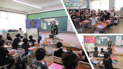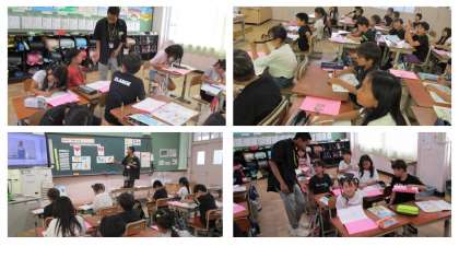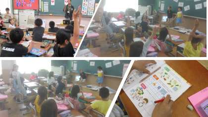 毎回元気いっぱい英語に慣れ親しんでいる3年生の子どもたち。