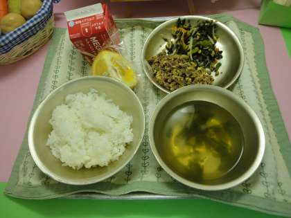 ビビンバは,常に好きな給食ランキングの上位に入る人気メニューです。今日も,ごはんののこりがほとんどなく空っぽの食缶が返ってきました。あまなつみかんは,春においしい果物。ほのかな苦みとあまずっぱさがおいしいですね。