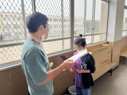 外国語で学習したことを生かして、学校の先生たちに英語でインタビューしました。