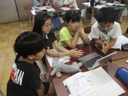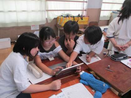 グループで決めた4文字の言葉を使って、リズムアンサンブルを作っています。