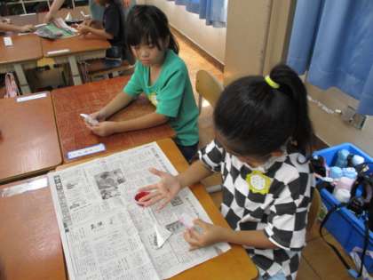 その液を和紙につけて、紙染めをしました。