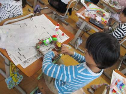 1年 生活 あさがおリースを作ったよ