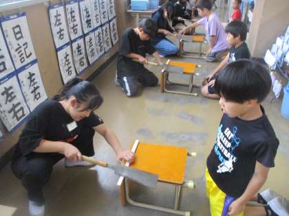 始めはのこぎりの歯が引っかかり、うまく切れずに苦戦している子どもたちでしたが、使っているうちに少しずつコツを掴み、上達してきました。