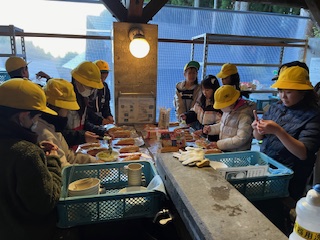 調理が終わり、これから牛乳パックを燃やして完成です。