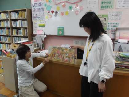 4時間目は図書室へ行きました。司書の先生から2冊の絵本の読み聞かせをしてもらいました。子ども達は身を乗り出して聞いていました。これからもたくさんの本と出会ってもらいたいと思います。