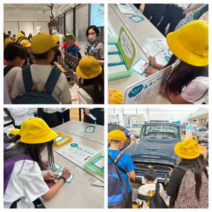 トヨタで初めて作られたエンジンを見たり、クラウンに感動したり、未来の車を考えてスケッチしたりし、あっという間の時間でした。この後昼食です。
