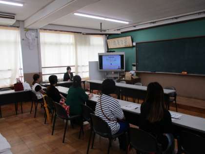 栄養教諭から給食についてお話させていただいた後、中学年と同じ量の給食を食べていただきました。その後、1年生の給食時間の様子を参観していただきました。保護者の方からは、
