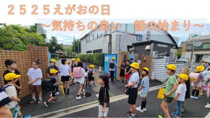 毎月25日は2525(にこにこ)えがおの日です。5,6年生の代表委員が朝のあいさつに立ってくれました。今回は、毎朝立ってくれている4年生の自主的組織「あいさつ隊」に、1,2年生も加わって、活気のある元気で気持ちのいい挨拶が校門前に響きあっていました。