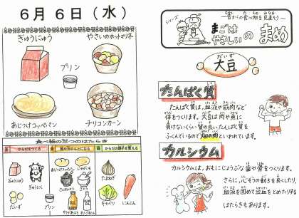 ま…豆(豆類) ご…ごま(種実類) は…わかめ(海藻類) や…やさい さ…さかな し…しいたけ(茸類) い…いも で,