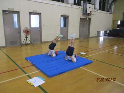 友だちの技をお手本にしていたり、一緒に取り組んだりと