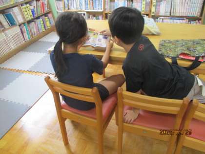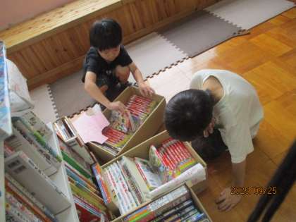子ども達にとても人気で、新しい本のどれを借りようか、選んでいます。