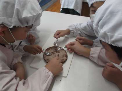 全体にぬりました。手作りケーキは子ども達に好評でした。