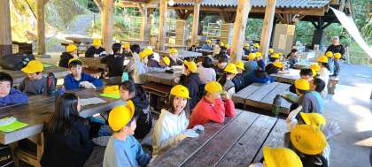 アスレチックで遊び尽くしました。食材の到着を待って、もうすぐ野外炊事です。