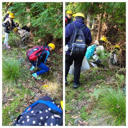 緩やかなコースを歩き、美味しい空気を吸いながら、木の実や枝、葉などを集めます。五感で自然を満喫しています。