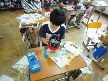 図工の学習「アニメーションを作ろう」でゾートロープを作りました。回転させると動きのあるアニメーションになっています。一生懸命楽しい作品を作ってくれました。想像力を働かせた立派な作品になりました。