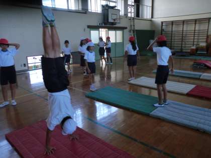 体育ではマット運動に取り組んでいます。