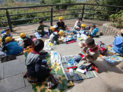 登山中はどんぐりや落ち葉などの秋見つけをしました。一生懸命登ったので,頂上にたどり着いた時は,みんなもうお腹ぺこぺこ。おうちの方に作っていただいたお弁当が,最高においしかったです!保護者の皆様,ご協力ありがとうございました!