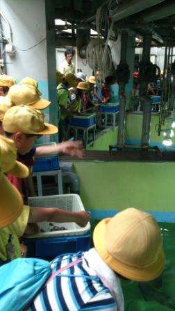 マリンランドでは,バックヤードに入れていただき,えさの準備の仕方を教わり,実際にえさやり体験もさせていただきました。ペンギンタッチもしました。
