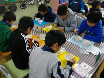 今日の中間休みに給食委員企画の豆つまみがありました。正しいおはしの持ち方で1分間に豆をいくつカップに移せるかチャレンジしました。みんな真剣にがんばっていましたよ。「12個やったー。はぁ。」と残念がる子どもや,「30個全部達成したー!」「ぼくは,31個やったで!」と大喜びの子どももいました。