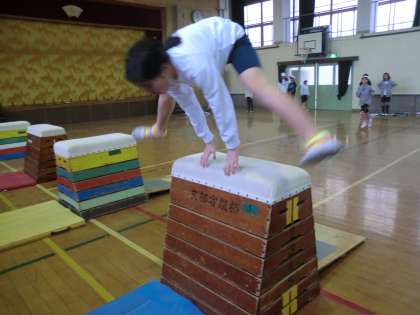体育では跳び箱運動に取り組んでいます。