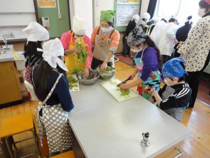 4年 水菜・みぶ菜収穫祭をしました! (5)