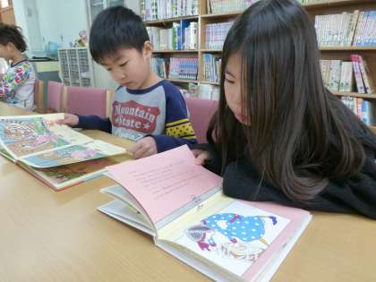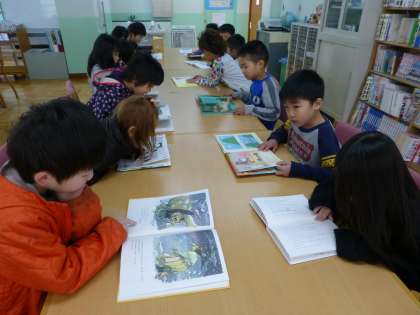 図書室で,上手に自分の好きな本を選んで読んでいます。
