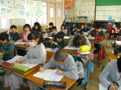 毎日、そうじ後にお昼のベーススタディ算数に取り組んでいます。授業で習ったことを復習してがんばっています。時間内に何問解けるか時間を気にしながら取り組む子どもが見られます。一生懸命な様子です。
